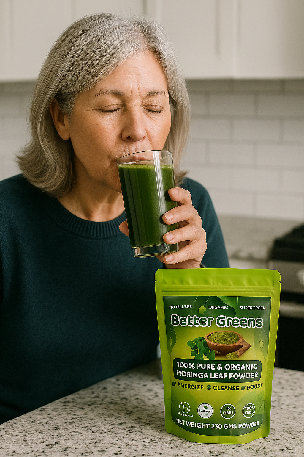 Better Greens 100% Pure & Organic Moringa Leaf Powder is your daily superfood ritual for clean energy, immune support, and inner balance.
