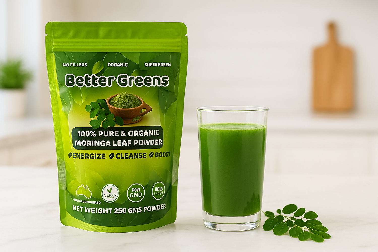 Better Greens 100% Pure & Organic Moringa Leaf Powder is your daily superfood ritual for clean energy, immune support, and inner balance.